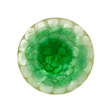The Capiz Coaster in Emerald Green by Joanna Buchanan showcases the natural beauty of layered capiz shell, arranged in a floral-inspired pattern with luminous depth. Rich emerald tones blend seamlessly with soft ivory highlights, allowing light to pass through the shell and create an elegant, organic glow.