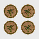 A set of four palm-tree beaded drink coasters, designed to introduce a playful tropical accent to table and bar settings. Each coaster features a detailed palm motif made of hand-applied beads, creating texture, shimmer, and a distinctive decorative focal point.