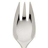 Silver-plated vegetable fork from the Dante collection. Its handle follows clear, balanced lines that reflect the collection’s focus on simplicity and proportion. The fork head features short, evenly spaced prongs that match the piece’s extended profile while maintaining a defined and intentional form. Subtle detailing supports the precise character associated with Dante.