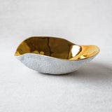 Please note that the golden finish is sensitive and should be treated with the utmost care. If using with cutlery is recommended using only wooden/horn/mother of pearl utensils to avoid scratching. Please hand wash and avoid scrubbing sponges. Not dishwasher safe, soft hand wash recommended.