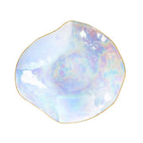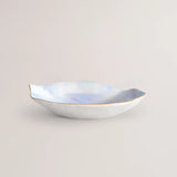 The Set of 2 Small Plates Pearlescent No5 – Indulge by Sarah-Linda showcases the artistry of Limoges porcelain in a refined, ocean-inspired form. Each plate features a delicate shell-like silhouette with a golden rim and a pearlescent finish that shimmers with iridescent hues under the light.
