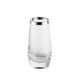 With its elegant Avantgarde silhouette, this glass is ideal for serving fine liqueurs, cordials, or after-dinner spirits. The polished silver rim elevates its sleek crystal form, creating a harmonious balance of tradition and modern design.