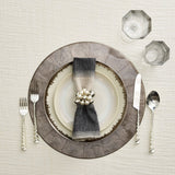 The name says it all, Bauble. This napkin ring could very well be mistaken for a cocktail ring. A statement piece made from clusters of metallic spheres on a lucite base. Think of it as jewelry for the dinner table. Go for the pearl and silver combination for an elegant dinner party.