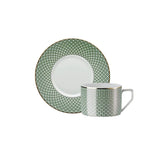 The Francis Carreau Green Porcelain Tea Cup with Saucer by Rosenthal combines fresh design with timeless refinement. Part of the Francis Carreau collection, it features soft green geometric check patterns accented with fine gold contours, contrasted with crisp white porcelain surfaces for a vibrant yet airy aesthetic.
