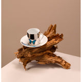 The Set of 2 Espresso Cups & Saucers Turquoise Butterfly in a Gift Box by Raynaud is an exquisite gift selection combining artistic porcelain craftsmanship with the contemporary elegance of mirror-platinated porcelain. Each cup is finished in a luxurious platinum mirror glaze that subtly reflects the butterfly design on the saucer placed below it, creating a striking optical effect that feels both modern and poetic.