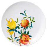 With its crisp white background, the vibrant fruits, blossoms, and intricate botanical patterns stand out in vivid contrast, making this dessert plate both visually captivating and versatile. Ideal for serving pastries, fruit, or refined after-dinner creations, it elevates every course with imperial-inspired artistry.