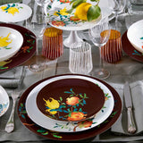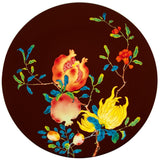 Against a deep brown background, the intricate design of fruits and blossoms takes on a dramatic vibrancy, bringing warmth and sophistication to the table. This refined color variation transforms the presentation plate into both a functional service piece and a decorative statement, ideal for luxury yachts, private villas, and elegant residences.