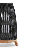 The Sandua Rechargeable Electric Flame Outdoor Lantern in Anthracite and Natural – Large by Manutti is a commanding lighting piece that brings sculptural beauty, artisan texture, and advanced performance to outdoor living. Designed by Robin Hapelt, this lantern features a hand-woven dark shell that contrasts beautifully with the sculpted natural teak base, creating a bold yet timeless presence.