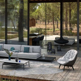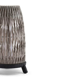 The Sandua Rechargeable Electric Flame Outdoor Lantern in Grey and Black – Large by Manutti is a bold sculptural lighting piece designed to anchor refined outdoor settings with its craftsmanship and presence. Created by designer Robin Hapelt, this lantern features a grey hand-woven shell crafted from HDPE wicker and rope, resting on a sculpted black teak base, creating a striking contrast that exudes sophistication.
