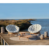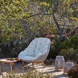 The lantern features a hand-woven shade made from UV-resistant wicker (HDPE) and rope, designed to withstand saltwater, chlorine, and extreme temperatures ranging from -25°C to +70°C. Resting on a natural teak wood base, sustainably sourced from Indonesian plantations, the piece is both environmentally conscious and visually striking. Suitable for indoor and outdoor use, including poolside and coastal environments.