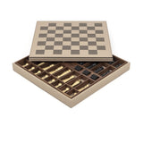 Chess & Checkers Game Board in Grained Taupe Leather by Pinetti