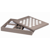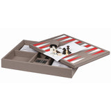 Introducing our elegant and versatile gaming set, crafted with a sturdy wood structure and covered in premium leather for a sleek and sophisticated look. This set is designed for the ultimate gaming experience, featuring a range of classic games for hours of entertainment: backgammon, chess, draughts, and domino.