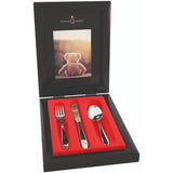 Presented in an elegant keepsake box featuring a charming teddy illustration, this exquisite set makes a thoughtful christening, birthday, or newborn gift — a modern heirloom designed to be cherished for years.