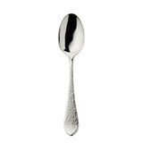 Martelé menu spoon is silver plated and distinguished by the collection’s hand-hammered surface. Each facet reflects light with subtle brilliance, while the gently rounded bowl makes it versatile for soups, stews, and other main dishes. The hammered design continues on both sides of the handle, highlighting the precision and artistry of Robbe & Berking craftsmanship.