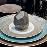The Minéral Irisé Sky Blue 29cm dinner plate by Raynaud brings elegant simplicity to the table with its light-reflective glaze and organic texture. Handcrafted in France from fine porcelain, it features Thierry Cheyrou’s signature relief design inspired by natural forms and finished in a shimmering sky blue glaze that catches the light with subtle brilliance.
