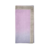 A soft gradient from lilac to periwinkle gives this hand-dyed napkin its quiet charm, reminiscent of a summer sky at dusk. The ombre effect is achieved through careful hand-dyeing, ensuring that each piece is unique.