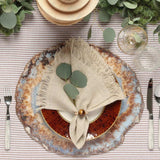 The textured fringe edging adds a touch of whimsy, making it an ideal choice for both special occasions and everyday elegance. Durable, yet dazzling, this napkin invites a sense of luxury to your farmhouse chic aesthetic, ensuring your table setting glows with warmth and style.