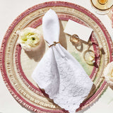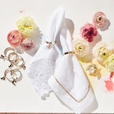 Exquisite, white, hand cut hydrangea edges, perfect for a bridal brunch or garden party. These delicate dinner napkins are inspired by the hydrangeas in Joanna Buchanan's garden. The pattern is sketched by hand and then embroidered and hand-cut by artisans in India.
