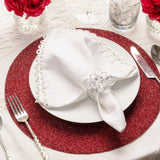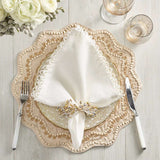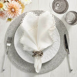 Crafted with precision, this white linen napkin by Kim Seybert features a distinctive looped edge that lends subtle texture and character. Its clean white hue and refined details suit both casual and formal tables.