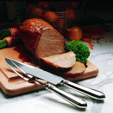 Navette carving knife by Robbe & Berking is designed with a long, sharp silver-plated blade that ensures clean, precise cuts of roasted meats and poultry. The handle reflects the collection’s design—elegant lines ending in a leaf-shaped tip, inspired by Art Nouveau aesthetics.