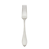 Navette menu fork by Robbe & Berking is designed with slender, elongated tines that make it ideal for lighter courses. Its finely contoured handle ends in the collection’s signature sculpted leaf-like tip, where light accentuates the smooth curve. Silver-plated, the piece reflects the graceful lines of the Navette collection, uniting refinement and practicality.