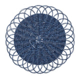 The Alfresco placemats are just what your table needs for open-air dining experiences. Handwoven faux blue rattan placemats in blue, with scalloped edges that exude sophistication and a laid-back vibe.