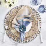 The Diadem Placemat in Ivory & Blue by Kim Seybert brings a refined, regal touch to your table, merging artisanal craftsmanship with an elevated contemporary palette. Each piece is meticulously hand-beaded, creating a radiant border inspired by jeweled diadems. Soft greys, periwinkle blue, and matte metallic tones form a subtle, shimmering composition that highlights every plate with quiet sophistication.