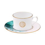 The Tea Cup & Saucer – Océan Bleu by Haviland captures the majesty of the sea in fine Limoges porcelain. Adorned with deep marine blues and subtle golden highlights, the design translates the rhythmic flow of waves into a piece of timeless artistry. The saucer features a sweeping ocean-inspired motif, while the cup is refined with a golden medallion accent and rim.