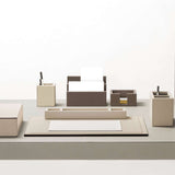 The desk blotter by Giobagnara features a leather-covered rigid pad of varying thickness, offering a durable and elegant surface for writing and organizing. The luxurious leather finish ensures a sophisticated touch while providing a sturdy base for daily tasks. Its varying thickness adds both style and functionality, making it the perfect accessory for any desk.