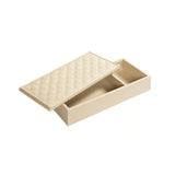 The Celio Diamonds rectangular box combines elegance and functionality, designed to enhance any workspace. With quilted padded leather inserts, this sophisticated box provides a refined way to organize small essentials like stationery, business cards, or other desk items. Its sleek design and high-quality craftsmanship make it an ideal addition to any professional setting, adding a touch of luxury while keeping your space neat and organized.