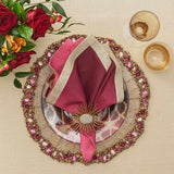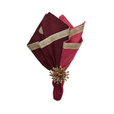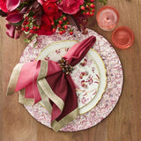 Rich shades berry red and plum flow seamlessly on this linen Dip Dye napkin. Hand-dipped and hand-dyed, each napkin is unique and finished with a refined metallic foil border. This elegant blend of color and detail fits perfectly with festive table settings.