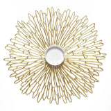Gleaming gold petals radiate across the Bloom placemat, capturing the layered beauty of a chrysanthemum in a dramatic openwork design. Crafted from durable pressed vinyl, its intricate pattern creates an interplay of light and shadow while providing a striking base for tableware or a sculptural centerpiece.