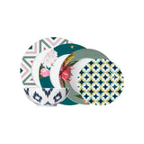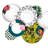 The Paraiso 30-Piece Porcelain Dinnerware Set by Sieger by Fürstenberg is a complete expression of playful artistry and masterful craftsmanship. Inspired by tropical flora and fauna, the pieces feature vivid motifs—lush greenery, exotic birds, and bold geometric accents—arranged in a dynamic yet harmonious style.