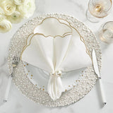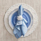 Inspired by the coastal seashore, the textural elements of the Bianco placemat mimic that of elusive rocky cliffs. The intricate combination of white beads creates a tactile as well as visual experience. While the design is complex, the monochromatic nature creates a neutral yet striking backdrop for the round placemat.