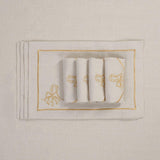 Adorn your dining table with elegance and sophistication using this exquisite set of placemats by Roseberry Home. Crafted from gold-colored Italian lurex fabric, these placemats feature a festive motif of Saint's Christmas staff Nicholas, intricately embroidered with gold-colored viscose thread and an elegant border.