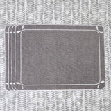Gray fabric placemats, detailed with minimalist dragonfly wing embroidery. Designed with subtle elegance, they are well-suited for everyday dining.