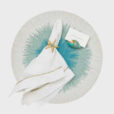 The Ombre Beaded Placemat in Turquoise by Joanna Buchanan brings a refined play of colour and texture to sophisticated table settings. Hand-beaded with meticulous attention to detail, the design features a radiant ombre effect that transitions from soft translucent tones to a vibrant turquoise centre, creating depth and visual movement.