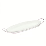 Porcelain Oval Fish Serving Dish Linea On Silver-Plated Stand by Schiavon
