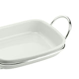 The Porcelain Rectangular Serving Dish Linea on Silver-Plated Stand by Schiavon embodies the essence of Italian luxury dining. Featuring a sleek white porcelain dish nestled within a gleaming silver-plated frame, this piece is perfect for presenting pasta, lasagna, vegetables, or baked delicacies with understated elegance.