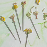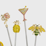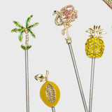 The Set of 6 Tropical Cocktail Picks by Joanna Buchanan brings playful sophistication to cocktails, canapés, and elegant entertaining. Each pick features a finely detailed tropical motif, including palm trees, flamingos, pineapples, bees, citrus, and cocktail glasses, all finished with sparkling embellishments that add a glamorous touch to any bar or table setting.