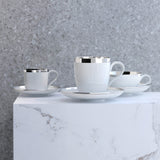 The Stella Platinum coffee mug by SIEGER by FÜRSTENBERG blends fine white porcelain with the sophistication of a lustrous platinum rim. Handcrafted in Germany, it features clean, architectural lines that suit both modern and classic interiors.
