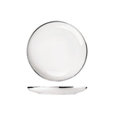 The Stella Platinum dessert plate by SIEGER by FÜRSTENBERG offers refined elegance with its fine white porcelain accented by a lustrous platinum rim. Handcrafted in Germany, it features clean, architectural lines that make it a versatile addition to both classic and modern table settings.