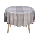 The Fleurs de Kyoto coated tablecloth in mist grey by Le Jacquard Français draws inspiration from Japanese gardens, featuring a graceful floral jacquard of blooming cherry blossoms and gentle foliage. Woven in France from 100% cotton and finished with a matte acrylic coating, it offers the refined look of fine linen with the everyday ease of a stain-resistant, wipe-clean surface.
