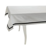 White Cotton Tablecloth with Black Stripe Border by Roseberry Home