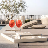 The Rectangular Lacquer Tray with Handles Diana by Riviere x Giobagnara combines Italian craftsmanship with modern sophistication. This elegant lacquered tray features handwoven leather handles, adding a refined tactile element to its glossy, minimalist surface.