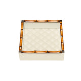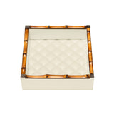 The Square Leather Tray Bice Diamonds by Riviere x Giobagnara blends contemporary Italian elegance with natural sophistication. Meticulously crafted, this refined tray features a quilted diamonds padded lining complemented by a bamboo trim accented with metallic ends in chrome.