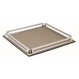 The Madison Square Tray by Giobagnara showcases the brand’s impeccable balance between modern design and Italian craftsmanship. With its leather-covered wood base and sleek chrome-finished metal frame, it brings understated elegance to any space.