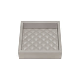 Characterised by its padded diamond-quilted leather base, this elegant tray embodies a perfect balance between structure and softness. The clean, square frame enhances the depth and texture of the quilted surface, making it an ideal piece for dressing tables, coffee tables or as a refined valet tray for daily essentials.