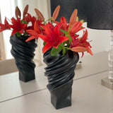 The Squall Vase by Rosenthal in black matte porcelain is a dramatic statement piece that captures the energy of a swirling storm in sculptural form. Designed by Cédric Ragot, this 32cm vase transforms fine porcelain into a fluid, dynamic silhouette inspired by natural motion.