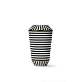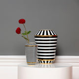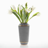 The Luna Ca' D'Oro Small Vase by Sieger by Fürstenberg is a refined expression of German porcelain artistry and architectural inspiration. Part of the Luna collection, this decorative vase is handcrafted in fine porcelain and features a striking black-and-white geometric pattern, accented by hand-applied 24k gold detailing.